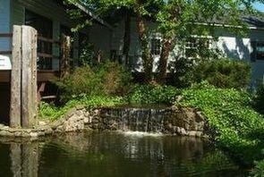 The waterfalls, babbling brook, stone walk ways and patios make for the perfect setting. Guests are seated on either side of the walkway, all with a "front row" view of the ceremony.